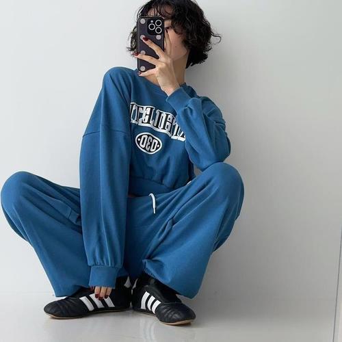 [신상오픈런]레터링맨투맨 라운드넥 긴팔티 와이드 밴딩팬츠 투피스 (30091537)