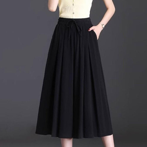 [옷자락]여자 플리츠 와이드 랩치마바지 찰랑핏 칠부 통 바지_4