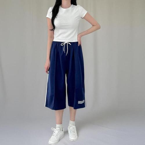 [신상오픈런]여성 캐주얼 스트라이프 옆선 버뮤다 와이드 7부 팬츠 (38169994)