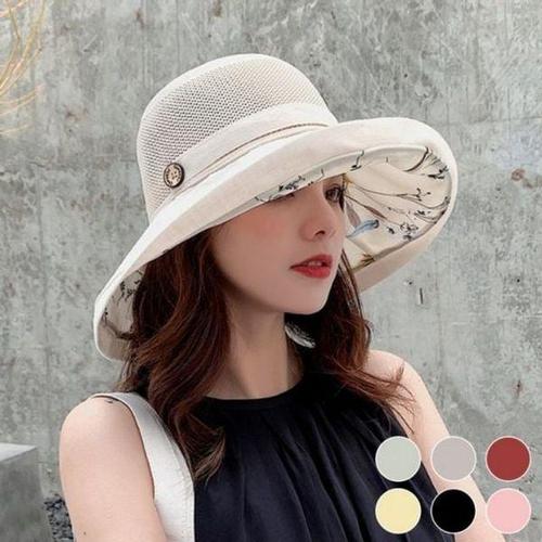 [에이치플러스몰]여성 데일리 더블창 와이어 백 리본 비치모자 버킷햇