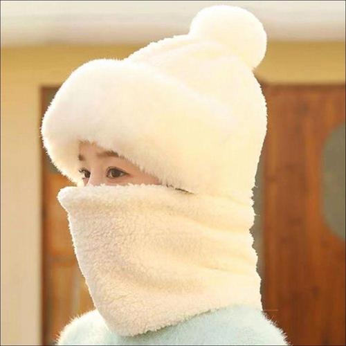 겨울 모자 겸용 여자 넥워머 마스크 퍼 부들 방울모자 WFLDJFN