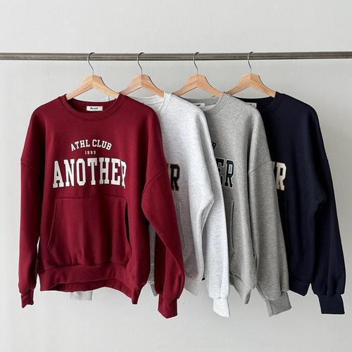 [옷자락] 여성 겨울 기모 맨투맨 와인색 캥거루 포켓 레터링 스웨트셔츠