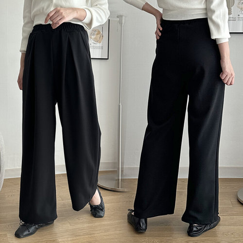 [에이치플러스몰]골지 허리가편안한 밴딩슬랙스 세미와이드팬츠 와일드