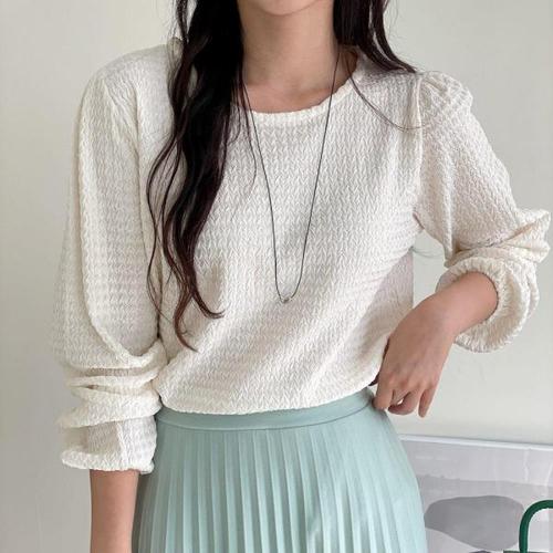 [옷자락]여자 U넥 큰사이즈 패턴 롱 위빙 벌룬 티셔츠