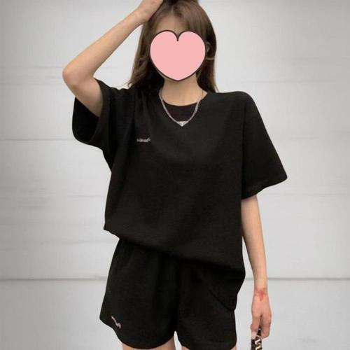 [신상오픈런]여성 루즈핏 반팔 티셔츠와 와플 자수 밴딩 반바지 세트 (41032198)