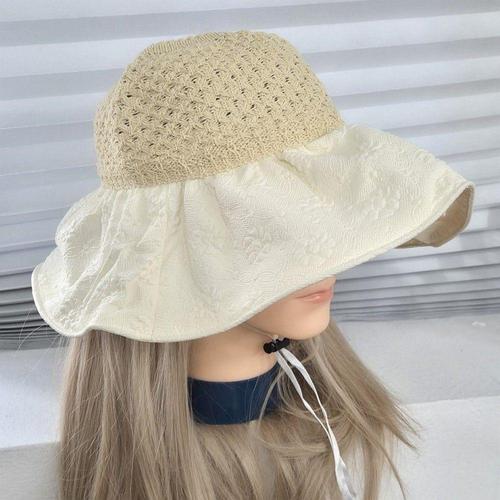 왕골 모자 썬캡 챙리본 여성 휴양지 모자 WFMB7Y0