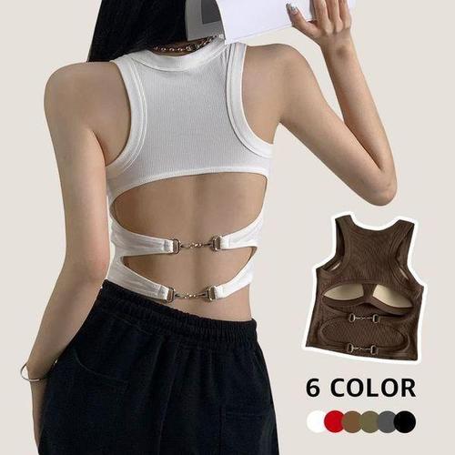 1개입 백리스 요가복 U넥 민소매 스포츠 점프수트 단색 스레드 스트레치 여성 바디수트 (가슴 패드 없음)