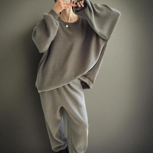 [신상오픈런]여성용 루즈핏 골지 퍼프 기모 맨투맨 겨울 조거 팬츠 세트 (44091722)