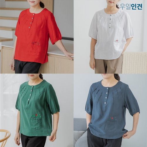 [우일인견] 여성 데일리룩 인견 자수 핀턱 블라우스 엄마옷 빅사이즈