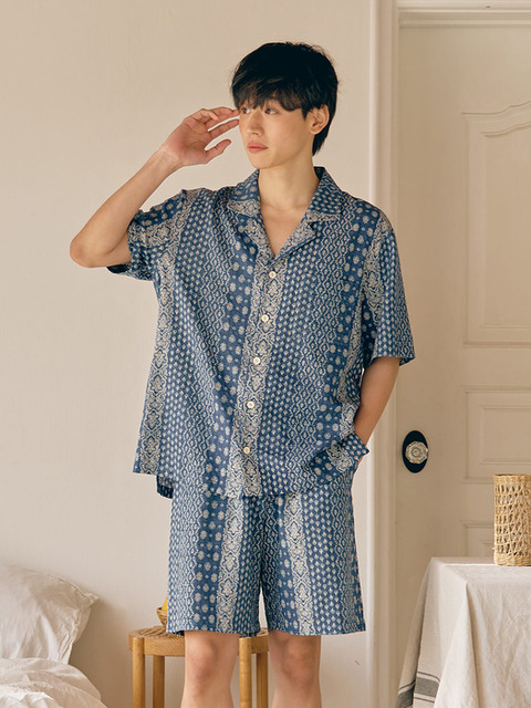 [울랄라파자마] 레브 반팔 남성페어 블루 (40수)