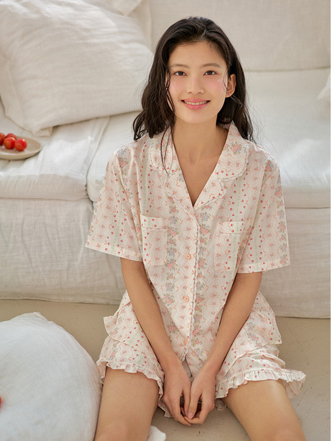 [울랄라파자마] 델리아 반팔 여성페어 크림 (40수)