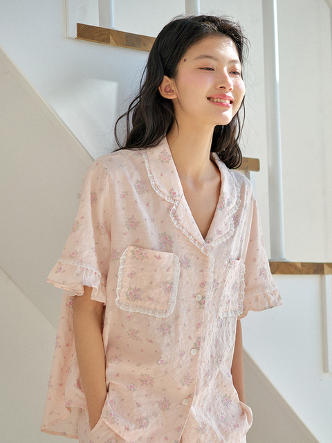 [울랄라파자마] 로나 반팔 여성페어 핑크 (40수)