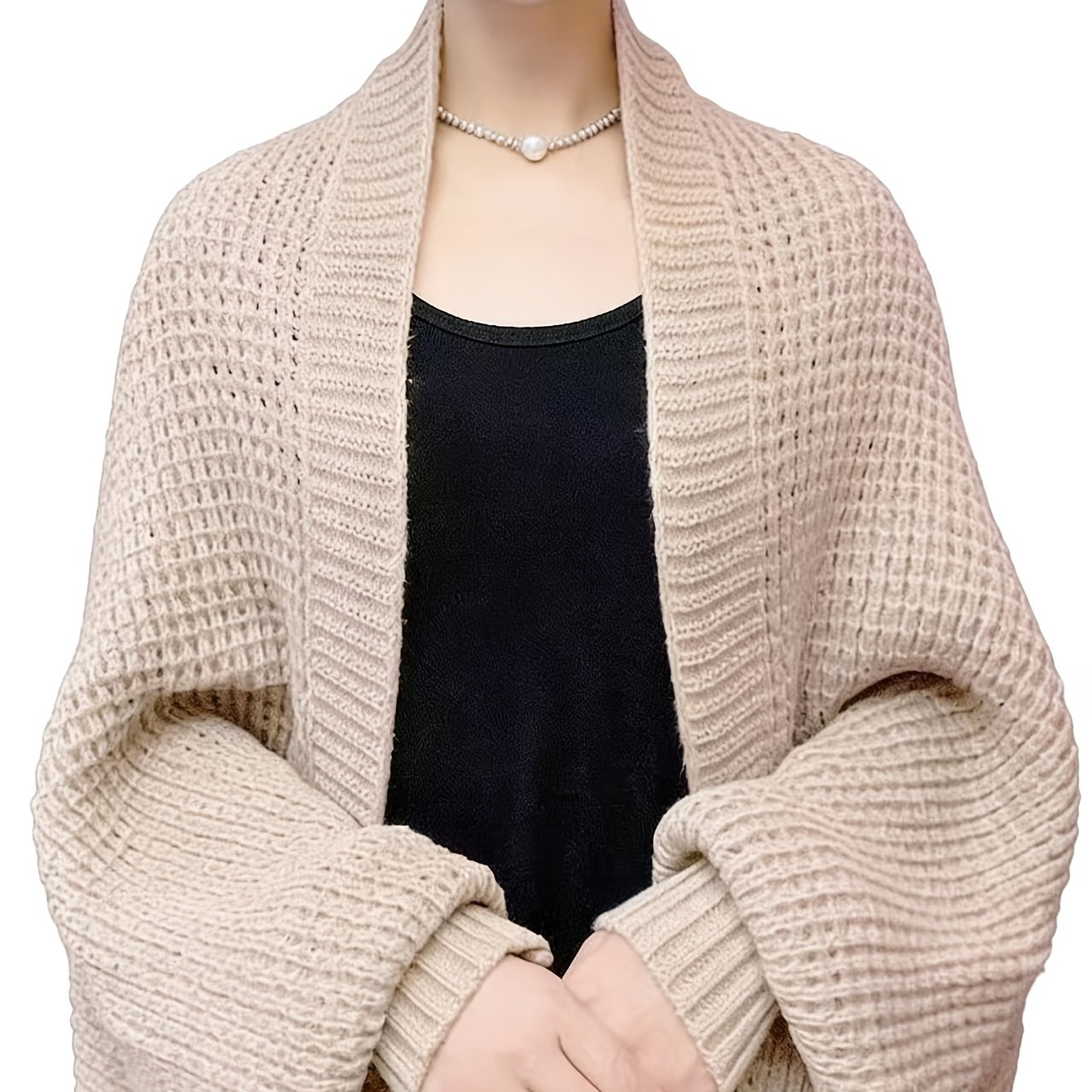 TEMU 플러스 사이즈 - 플러스 사이즈 - 신상 숄, 가을/겨울용 스타일리시하고 다재다능한 루즈핏 긴팔 카디건, 단색