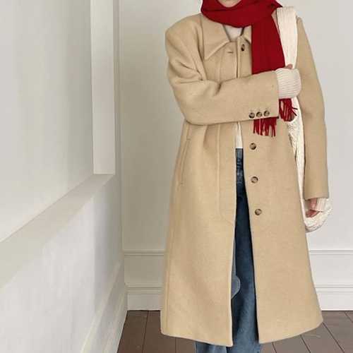2026 여성용 봄 울 롱 코트 맥시 오버코트