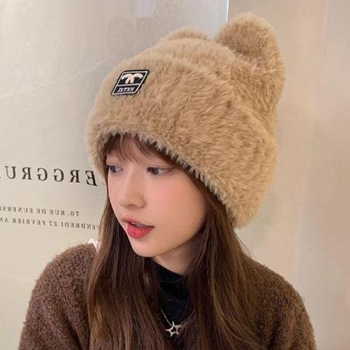 [에이치플러스몰]여성 귀여운 곰돌이귀 털모자 1P 겨울 보온 비니 패션