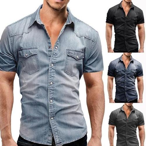 [엄지척]남자 데님 빈티지 워싱 캐주얼 반팔 청남방_20483366_667501