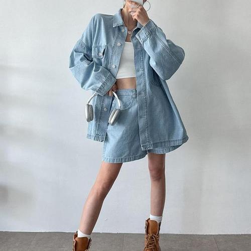 [신상오픈런]연청반바지 에이라인 오버핏 워크셔켓 청남방 투피스 (31715848)