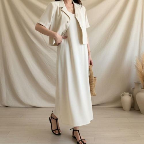 여성 드레스 롱 봄여름 블레이저와 마원단 세트