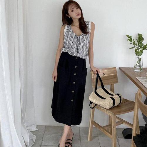 [다잇템]여성용 미니멀리즘 치마 롱 버튼 마원단 무지
