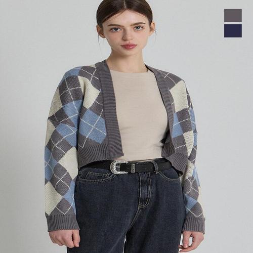 [원더플레이스][더블유스탠다드(W STANDARD)] (TD)우먼 아리아나 아가일 패턴 가디건