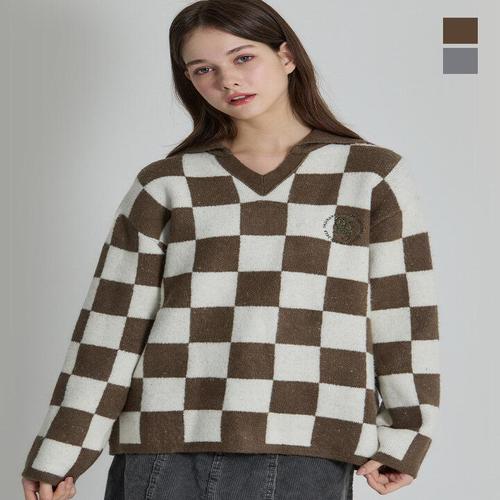 [원더플레이스][더블유스탠다드(W STANDARD)] 우먼 체커 보더 카라 풀오버 니트