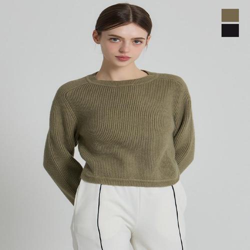 [원더플레이스][더블유스탠다드(W STANDARD)] 우먼 R 라운드넥 기본 크롭 풀오버 니트