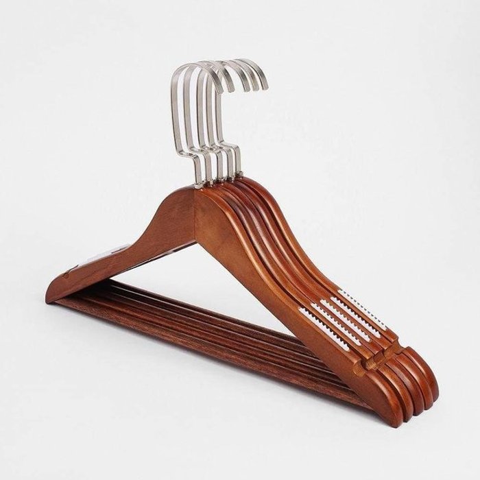 엄지척 게더릭 원목 논슬립 옷걸이 5p세트 (브라운) (여성용)