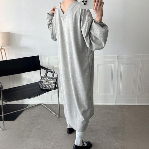 [신상오픈런]브이넥 원숄더 시보리 오버핏 봄원피스 츄리링 (30268383)