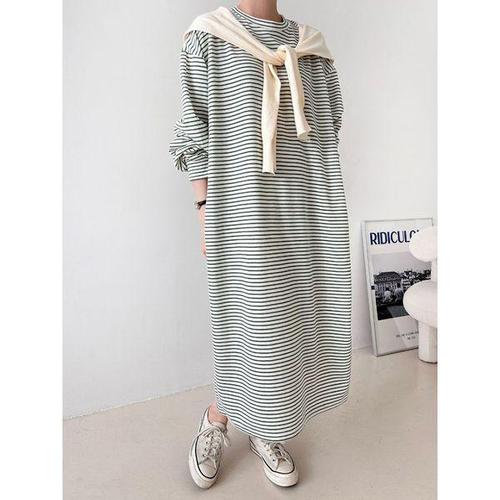 [샵앤]국산 여성 라운드 박시 단가라 롱원피스 ARA-WDR-4950-그린