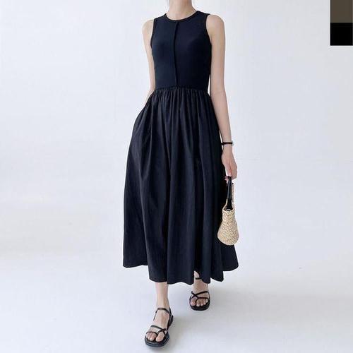[드리다]여성 여름 쉬폰 플리츠 빅사이즈 플레어 민소매 나시 원피스 40-50대 미시 하객 상견례 오피스룩