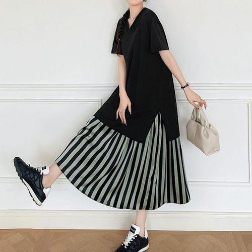 [무드수]페이크 투피스 러프 편한 원피스