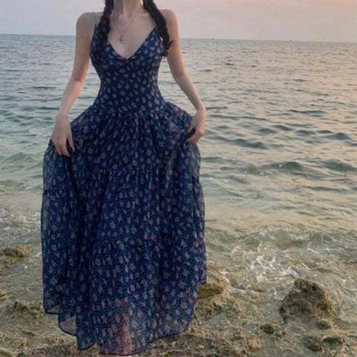 [셀럽하우스]나시 QYIU3725 롱원피스 드레스 비치원피스 끈 슬림 가슴패드