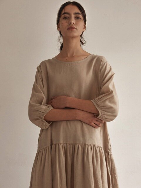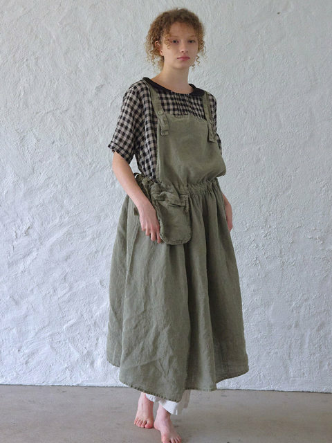 [호메로페로] 린넨 천연 물들이다 라운드 셔링 드레스