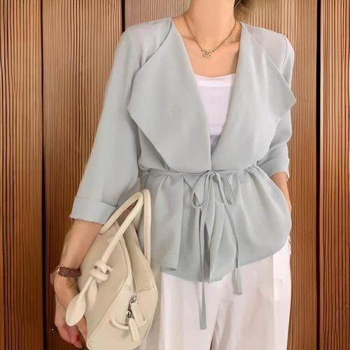 [신상오픈런]여성 웨딩 출근룩 리본 대카라 반팔 시스루 니트 가디건 (32642723)