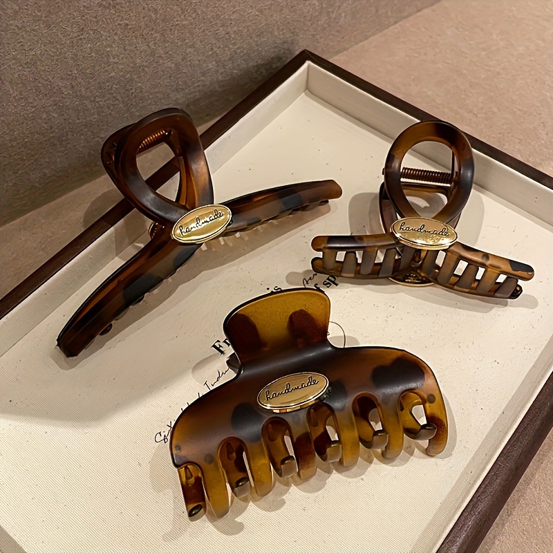TEMU 3개 세트 레트로 우아한 거북이껍질 헤어 클립, 고급 크로스 샤크 클립, 반원형 하프업 헤어핀, 두꺼운 머리용 대형 사이즈, 다용도 가을/겨울 일상 착용, 선물 세트, 쉘 헤어 액세서리, 헤어 클립, 우아한 헤어 클립, 대형 헤어핀, 중간 사이즈 헤어 클로, 여성용 헤어핀, 헤어핀, 토키