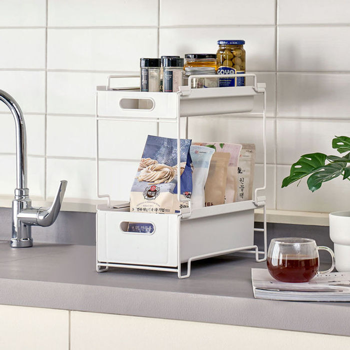위즈홈 [위즈홈] 앤스택 슬라이딩 적층 수납함 2단