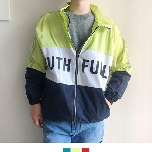 [에이치플러스몰]커플시밀러룩 레트로 윈드러너 여자 삼색바람막이