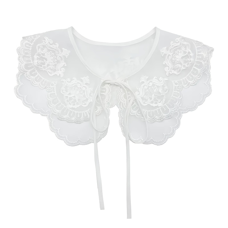 TEMU 우아한 이중 레이어 자수 숄 칼라 인조 칼라 - 통기성 섬유로 제작된 여성용 다용도 스타일리시 액세서리