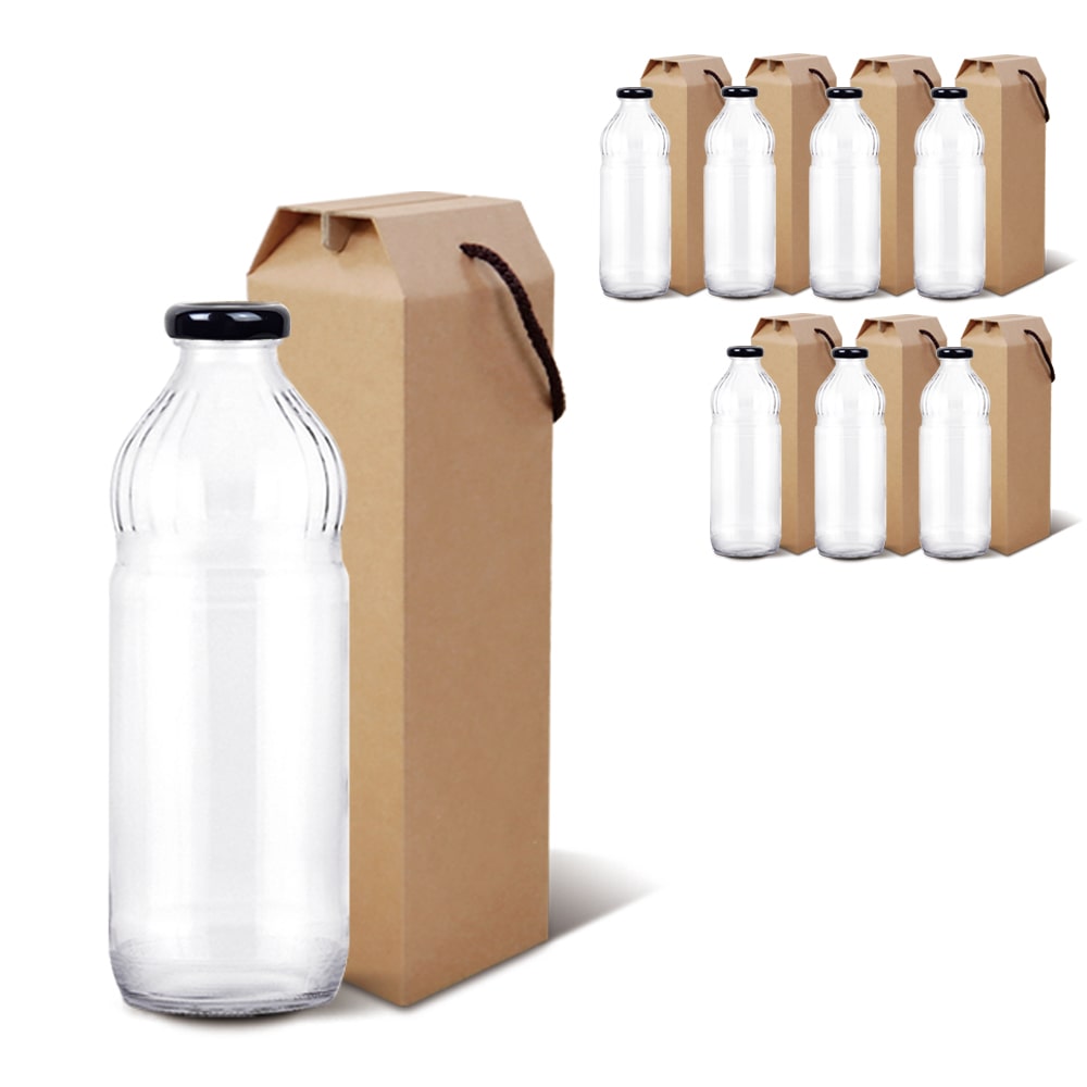 유리병 주스1000ml (입구좁은형/블랙캡)+선물상자(8세트) 고급형 주스대