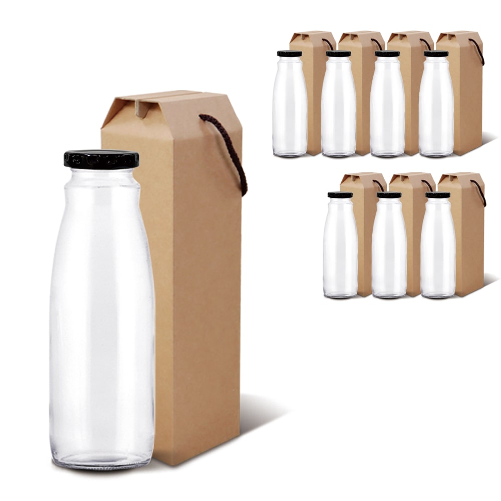 유리병 주스1000ml (입구넓은형/블랙캡)+선물상자(8세트) 고급형 주스대