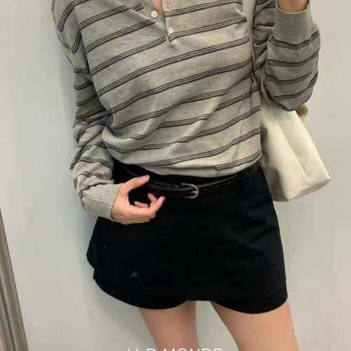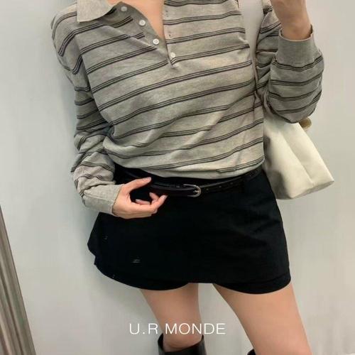 유아몽드 / 4버튼 세로줄 카라넥 긴팔 티셔츠 배색 스트라이프 오
