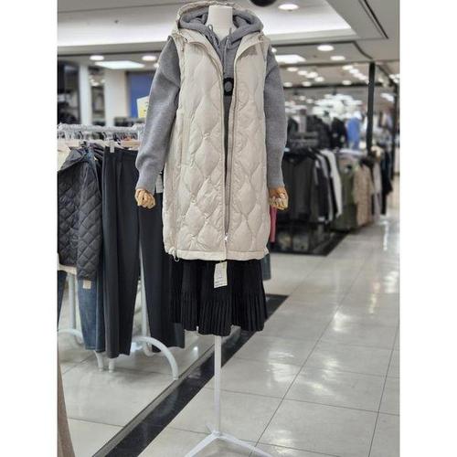 [셀럽하우스]오리털 FNEZ8330 롱 다운 경량 패딩 후드 조끼 베스트 베이지