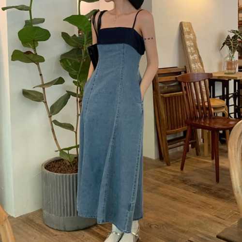 G125689 뷔스티에 서스펜더 청원피스 데님원피스 비치