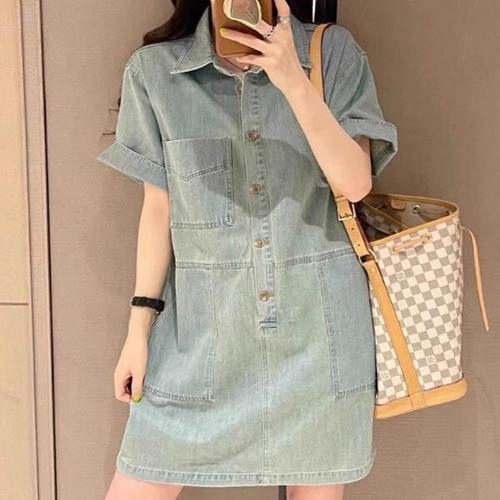[드레스허그]넬데스 스트라이프 셔츠 데님 원피스
