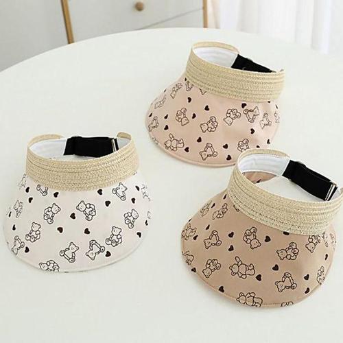 [에이치플러스몰]유아 아동 어린이 곰돌이린넨밀짚썬캡 자외선 가림막 봄 여름 가을 챙모자 귀여운 썬캡 ..