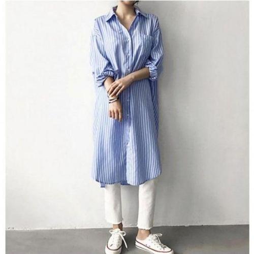 [셀럽하우스]롱 JYAY5748 여름원피스 편한 스트라이프 베이직 데일리 셔츠