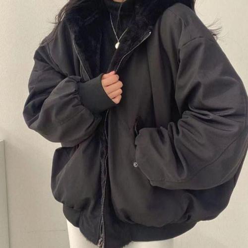 데일리 여성 뽀글이 겨울 융털 후드집업 패딩 양면 캐주얼 항공점퍼