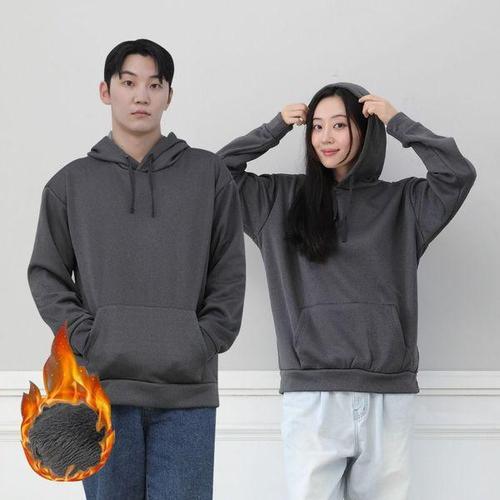 (완전 편한) 1+1 남녀 공용 특양면 기모 베이직 밍크 융기모 후드티 긴팔 티 가을 겨울 빅사이즈 오버핏 따뜻한 도톰 방한 기본 융털 보온 소프트 무지 남자 여성 후드 맨투맨