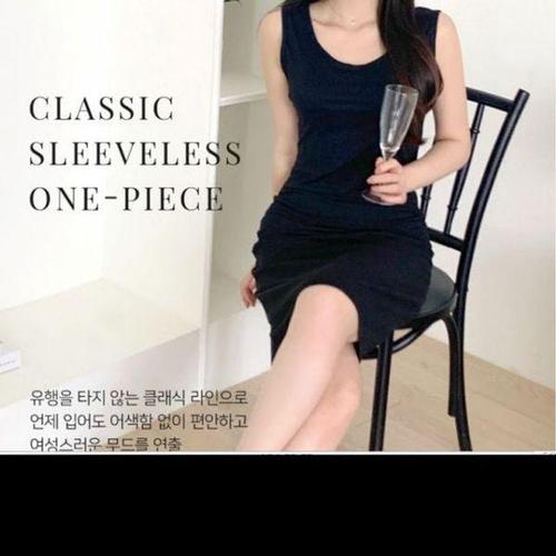 [옷자락] 여성 심플 슬림핏 무지컬러 이너 나시 롱 원피스