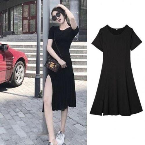 [에이치플러스몰]이너 라운드 추천 원피스 트임 꾸안꾸 롱드레스 블랙
